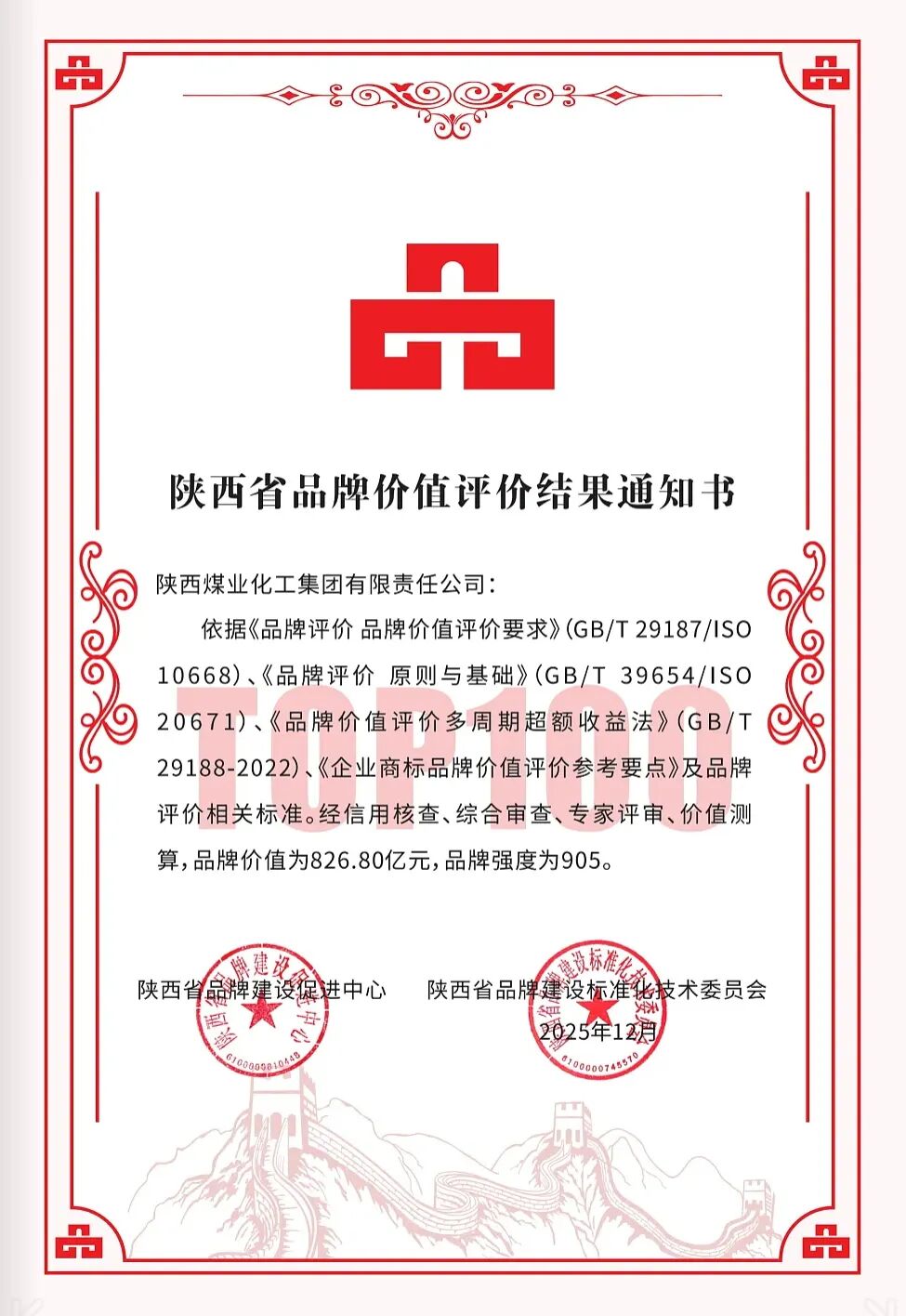 陜煤居榜首!全省品牌價值TOP100發布